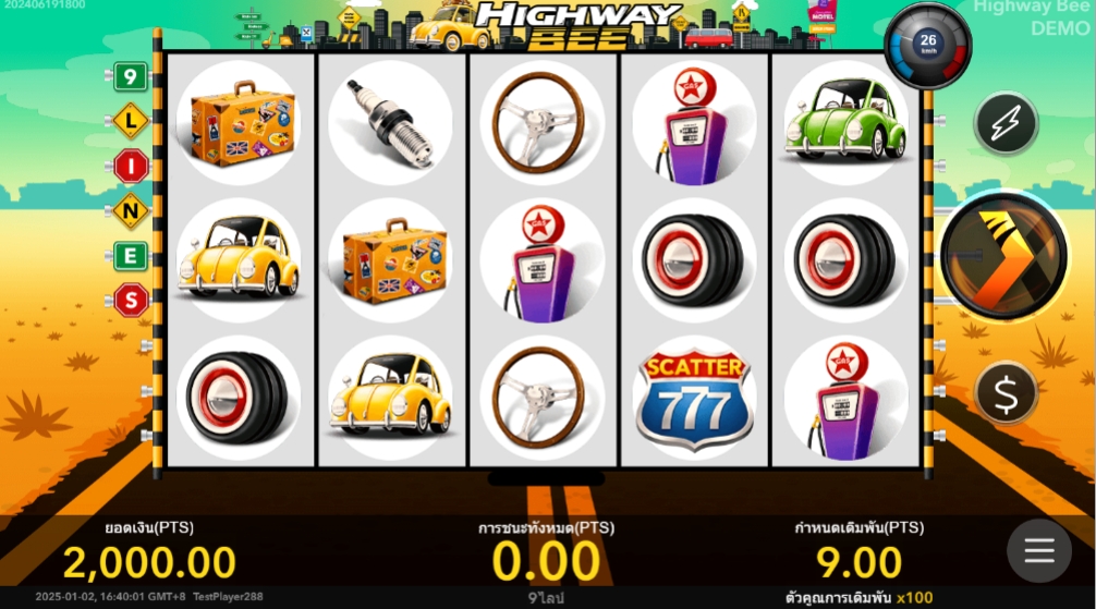 Highway Bee เกมสล็อตที่จะพาคุณท่องเที่ยวผ่อนคลายไปยังเส้นทางต่างๆ มีวิวทะเลทรายและเมืองสวยๆให้ชมพร้อมเสียงและป้ายเดินทางสมจริง เกมนี้เป็นแนวสบายๆ เล่นไม่ยาก ทำเงินได้แบบชิลๆ แต่แจ็คพอตแจกให้มากกว่า 10,000 เท่าเลย สองคู่รักที่จะพาผู้เล่นเข้าสู่โลกแห่งความมั่งคั่งผ่านวงล้อรีล 5 วงล้อ 3 แถว เต็มไปด้วยสัญลักษณ์กระเป๋าเดินทาง ปั๊มน้ำมัน เครื่องยนต์ ไมล์รถ ออกแบบมาอย่างน่ารักน่าเข้าเล่นสุดๆ แจกรางวัลพิเศษให้เพียบ เข้าเล่นแล้วไม่มีผิดหวังอย่างแน่นอน