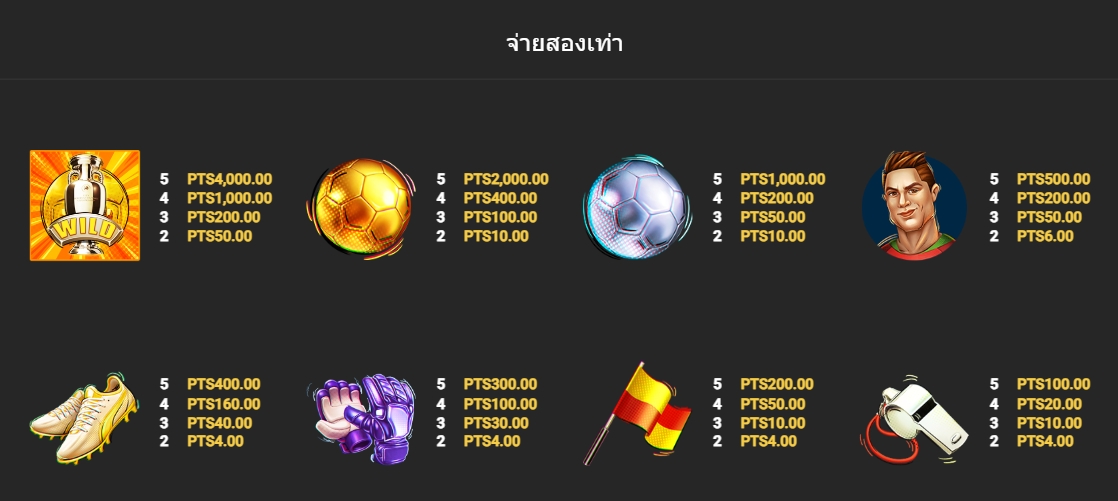 pg slot to เว็บสล็อตออนไลน์ Soccer King ชนะได้สองทิศทาง ทั้งจากทางซ้ายไปขวาของวงล้อ และเริ่มจากขวาสุดไปซ้ายของวงล้อเพิ่มโอกาสชนะให้ผู้เล่นเป็นสองเท่า พร้อมเพย์ไลน์ที่ให้ผู้เล่นรวยปังแบบง่ายๆ 5 เพย์ไลน์ มีสัญลักษณ์ทำเงินที่มอบความสนุกและความมั่งคั่งให้คุณไม่รู้จบ ตัวสัญลักษณ์เข้ากับธีมฟุตบอลได้เป็นอย่างดีทั้งรูปถ้วยรางวัล ลูกบอลทองคำ สัญลักษณ์ลูกบอลเงิน นักบอล รองเท้าบอล ถุงมือโกล ธงชาตินักแข่ง นกหวีด เข้ามาควบคุมการแข่งขันเสมือนได้เข้าไปลงสนามซอกเกอร์ที่ใหญ่ที่สุดด้วยตัวเองได้แล้ววันนี้