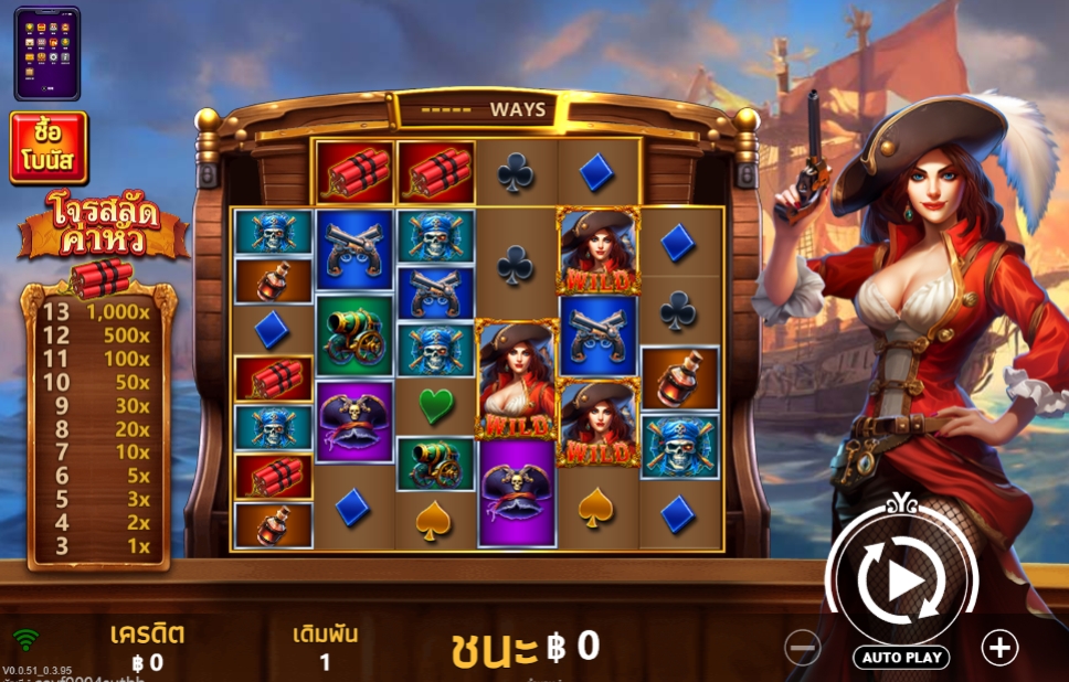 Bounty Pirate เกมสล็อตโจรสลัดสาว พาคุณออกล่าสมบัติครั้งใหญ่ ออกค้นหาสมบัติทางเรือไปกับกัปตันหญิงคนสวย บอกเลยว่ามันส์แน่นอน มีระเบิดตัวคูณให้คุณรวยง่าย รวยไว ระเบิดทีรับตัวคูณสูงสุด x1000 เท่าของเงินเดิมพันไปเลย รับกำไรได้ไม่อั้นผ่านวงล้อรูปแบบ 6×5 ค่าหัวของโจรสลัดสาวสูงมาก ยุคสมัยที่เลวร้ายกำลังเริ่มขึ้นแล้ว สะสมระเบิดไดนาไมต์ให้มากที่สุดเพื่อระเบิดที่ซ่อนสมบัติสุดยิ่งใหญ่ที่ผู้คนและโจรสลัดทั่วโลกต่างตามหา จากนั้นคุณจะได้เป็นราชินีโจรสลัดที่มั่งคั่งที่สุดในโลก