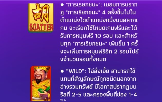 เพลิดเพลินกับเกมสล็อตออนไลน์ที่น่าหลงใหล ทุนหลัก 100 สอยกำไรหลักแสนได้สบาย จากค่ายเกม YGR Games เกมสล็อตที่มาพร้อมฟีเจอร์ไวด์เทพเจ้าผู้มั่งคั่งแจกโชคช่วยผู้เล่นบนวงล้อบ่อยสุดๆ ใครอยากเสี่ยงโชคกับสล็อตที่เล่นง่าย ต้องเกมนี้เลย และยังมีฟีเจอร์ Scatter สุ่มได้ 4 ครั้งขึ้นไป เรียกเกมฟรีได้มากกว่า 10 รอบเลย ตัวคูณก้าวหน้าเริ่มต้น x1 เท่าและจะเพิ่มขึ้นสูงเรื่อยๆ เทพเจ้าอวยพรให้ไพ่ทองคำของคุณชนะทุกการเคลื่อนไหววงล้อ