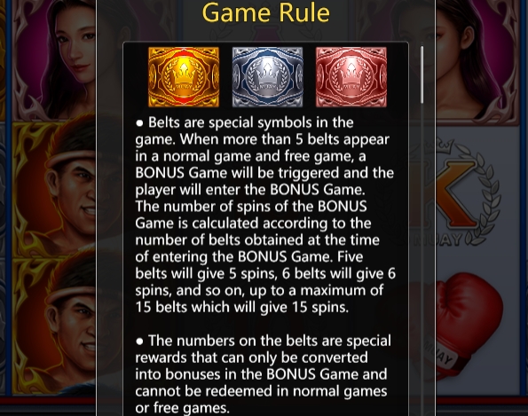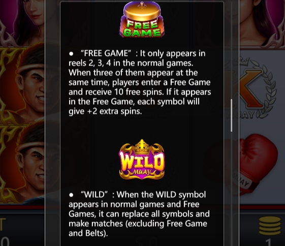 Muay Thai เกมสล็อตยอดนิยมที่มาพร้อมวงล้อขนาด 5 วงล้อ 3 แถว เต็มไปด้วยสัญลักษณ์นักมวยและเข็มจัดแจ็คพอต เกมยอดฮิตที่ใครเล่นก็ได้กำไร วิธีการเล่นเข้าใจง่าย แม้ผู้ที่ไม่เคยเล่นเกมสล็อตมาก่อน โดยจะมีแจ็คพอตใหญ่ 3 รางวัล เป็นรูปเข็มขัดสีทอง เข็มขัดสีเงิน และเข็มขัดสีทองแดง ถ้าสุ่มได้ 5 ภาพก็เล่นรอบโบนัสได้เลย นอกจากเข็มขัดแจ็คพอตแล้วภายในเกมยังมีสปินฟรี ฟีเจอร์ไวด์ช่วยเพิ่มโอกาสการชนะให้ผู้เล่นได้อย่างยอดเยี่ยมอีกด้วย