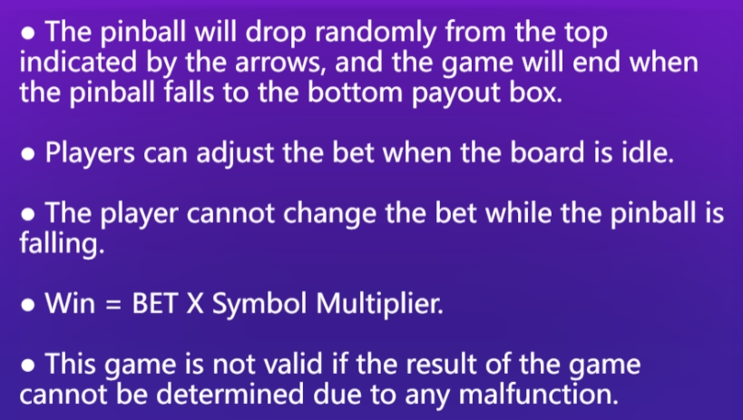 เพลิดเพลินกับเกมลงทุนแนวใหม่ สนุกไม่ซ้ำใครจากค่าย YGR Games โดยเมื่อผู้เล่นเข้าไปในเกมแล้วจะได้เลือกโต๊ะพินบอลที่มีตังคูณและธีมแตกต่างกันเมื่อผู้เล่นเลือกห้องที่ชอบได้แล้วก็กดเข้าไปทดลองเล่นได้เลย ในแต่ละห้องจะมีตัวคูณสูงสุดตามที่แสดงไว้ที่หน้าจอครั้งแรกเลย กดที่ปุ่มสปินเพื่อเป็นการเริ่มเกมเมื่อลูกบอลเหล็กลงมาตรงช่องใดก็ตามที่ด้านล่างผู้เล่นก็จะได้รับเงินรางวัลทันที