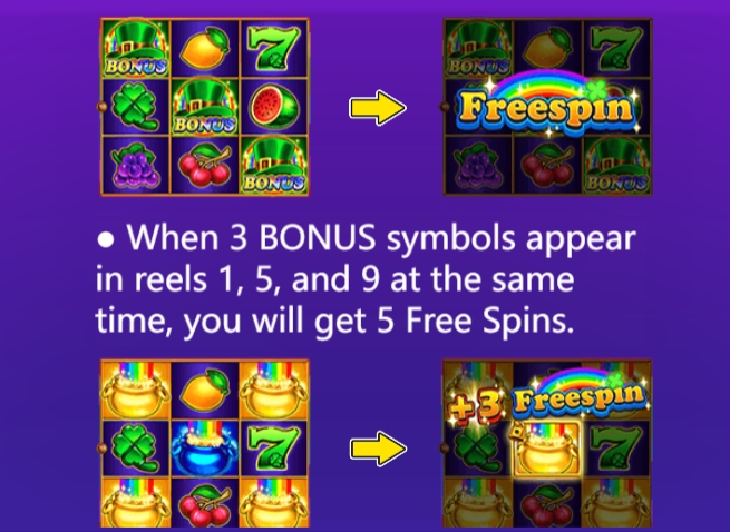 Rainbow & Clover 7 เกมสล็อตที่มาพร้อมแจ็คพอตใหญ่กว่า 1,000 เท่าของเงินเดิมพัน ธีมเกมแฟนตาซี พาคุณเข้าไปผจญภัยในดินแดนแห่งเทพที่มีหม้อทองคำซ่อนสมบัติอันล้ำค่าอยู่ที่ปลายสายรุ้ง หากสุ่มได้หม้อทองคำไม่จำเป็นต้องเรียงตามเพย์ไลน์ สุ่มได้ตำแหน่งใดก็ได้เริ่มต้น 3 ใบ รับเงินรางวัลแจ็คพอตได้ทันที มีโอกาสได้รับสูงสุด 9 ใบแจ็คพอตใหญ่ทันที 1,000x ยิ่งเดิมพันสูงยิ่งได้กำไรสูง เกมที่ถูกออกแบบมาให้มีตาราง 9 ช่อง สามวงล้อสามแถวเล่นง่าย ได้เงินจริง